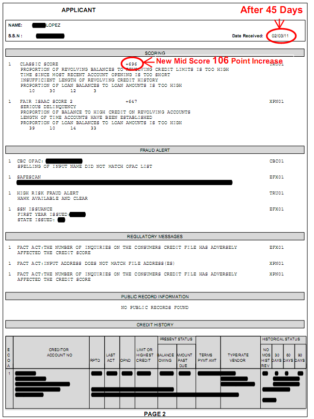 Our client came to us with a midscore of 589. In just 45 days, CIQ was able to improve their credit score by 106 points!