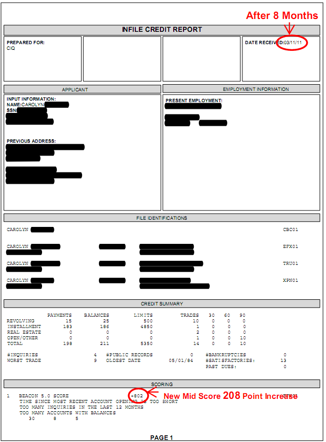 totaling $32,241.00 in unpaid debt. Raising this client's mid score 208 points!!!