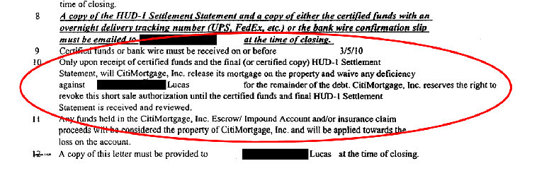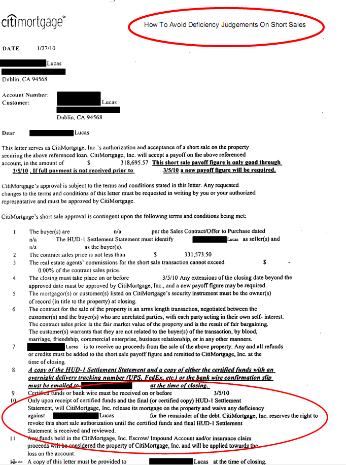 Language similar to this example will protect you from a deficiency judgment.