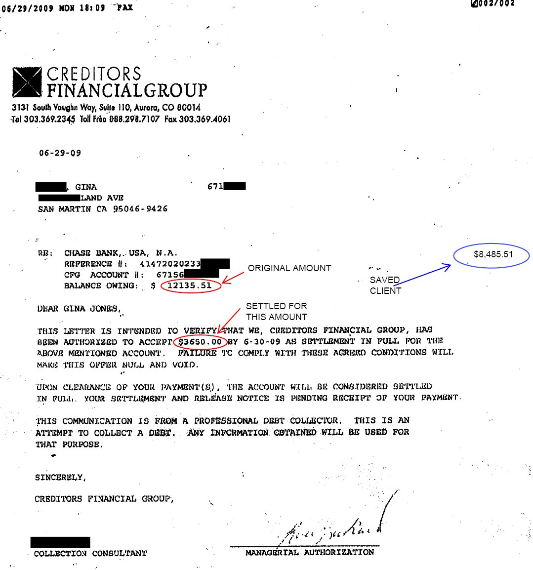 Client came into CIQ Debt Negotiation with Creditors Financial bad debt of $12,135 from Chase Bank and we were able to settle for $3,650. Client saved $8,485.