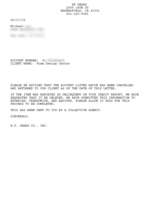 Often times we get asked what a letter of deletion looks like from a collection agency. Here is an example of a deletion letter obtained for our client.