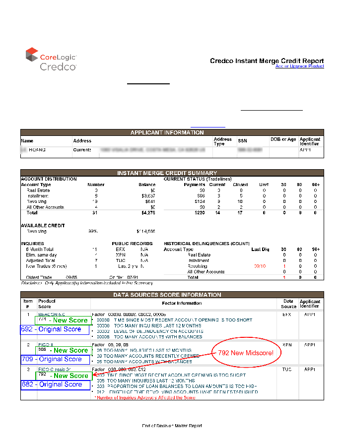 682 score to a 806 score in just 45 days 124 point jump! WOW! All 6 original negative accounts removed in just 45 days. He just saved $102,000 in interest on his new mortgage loan now. He also just bought a new car for 0%. No money down on a brand new Porsche, all this after the home loan closed. Our next step is to buy 1 investment property, which we are in escrow, NOW. He is VERY HAPPY with his loan officer & real estate agent whom sent him to us for coaching.