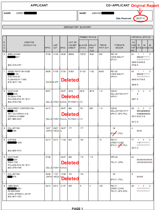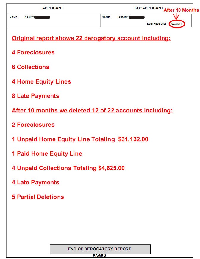 After 10 months of working on their file we were able to remove the following: