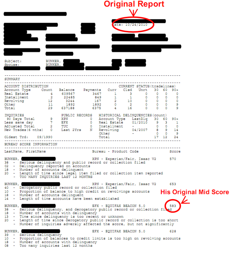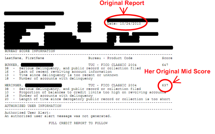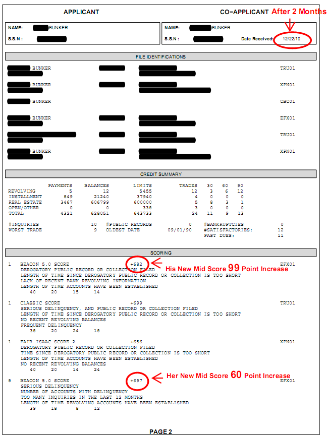 A couple came to us with his midscore being 583 and her score being 637. After two months, and the help