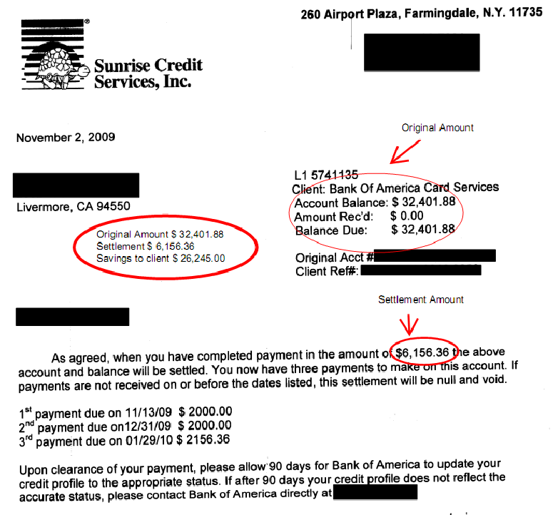 This is a settlement letter showing the savings to our client. They originally owed $32,401.88. After our debt negotiation team was finished, CIQ negotiated a final settlement of $6,156.36 - for a savings of over $26,000! We have hundreds of success stories like this. Please come into our office and ask to see our CIQ Success Stories 700 club.