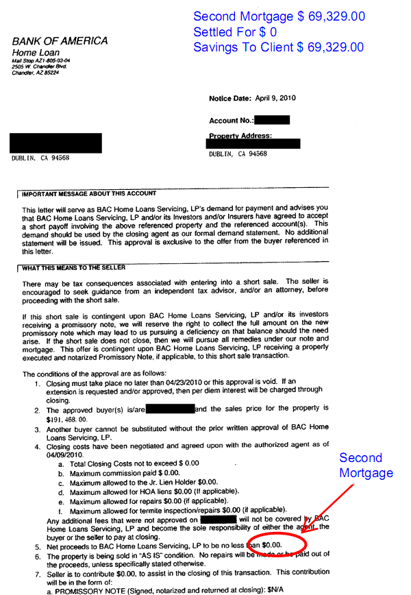 This home owner was able to reduce their first mortgage by $104,972.81 and settled their second mortgage for $0 a savings of $69,329.00. A total saving of $174,301.81 to the home owner.